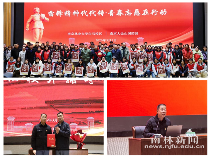 【南林新闻中心讯】3月1日,白马校区联合大金山国防园共同举办“雷锋精神代代传 青春志愿在行动”学雷锋主题系列活动。本次活动将学雷锋作为新学期“开学第一课”,引导广大青年深刻理解、传承与弘扬雷锋精神,激励青年学子在服务社会、奉献人民的志愿实践中找准人生方向、锤炼过硬本领。雷锋班第11任班长宋若波,大金山国防园董事长姜庆香,白马校区党委副书记、学生工作部部长陈鑫及师生代表参加活动。