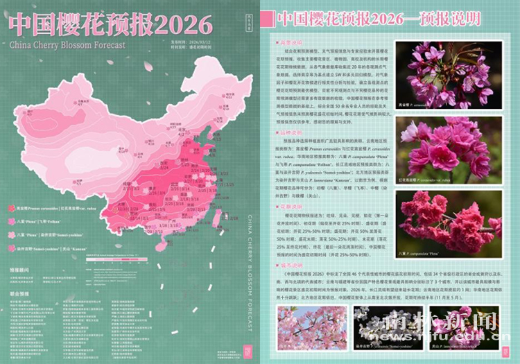 【南林新闻中心讯】近日,由taptap官网生命科学学院樱花研究中心主编的系列科普报告 ——《中国樱花预报2026》正式发布。这是该中心连续五年向公众发布樱花预报及科普报告,报告联合樱花研究相关领域 50 余位专家,结合花期预测模型、天气预报信息与专家经验,以图文并茂的形式对国内主要赏樱区域的最佳观赏期进行科学预报,成为市民春日游赏赏花的实用指南。