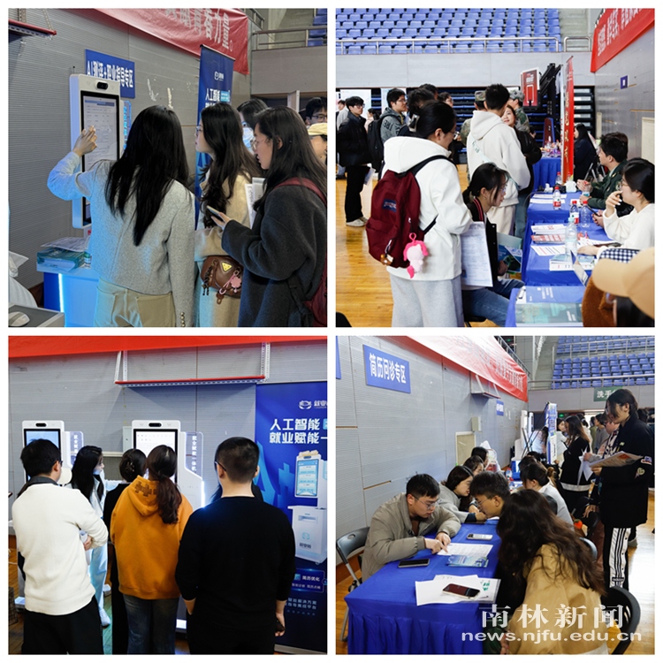 本次招聘会最大亮点是数字赋能全面落地,打破传统招聘时空限制。学校依托南林数智化就业服务体系,上线线上线下同步简历投递功能,毕业生既可现场投递纸质简历,也可通过扫码直投简历,实现“线下逛展、线上对接”双线并行,大幅提升求职与招聘效率。企业招聘负责人纷纷表示,数字化渠道让人才筛选更精准、沟通更便捷,有效缩短了招聘周期。为全方位护航毕业生求职,现场专设AI测评+职业指导专区、简历问诊专区、出国留学咨询专区、参军入伍咨询专区五大服务板块,构建“招聘+指导+规划”一站式服务矩阵。AI测评系统通过科学算法为毕业生生成个性化能力画像与职业适配报告,帮助学生清晰定位求职方向;资深就业指导老师坐镇简历问诊专区,一对一优化简历结构、打磨表述细节;出国留学、参军入伍专区则为有多元发展规划的学生提供政策解读、流程指导等专属服务,切实解决毕业生求职全流程困惑。